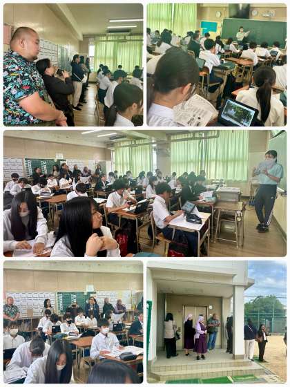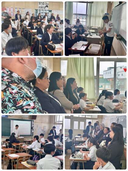 1年1組から順番に全クラス(3年生は体育大会学年練習)の授業中に、フィリピンの先生方8名とジェイソン、矢野先生、阪井校長先生が入って来ても、平気に普通に授業をしながら、対応している加美南中学校の生徒たちを頼もしく感じました。