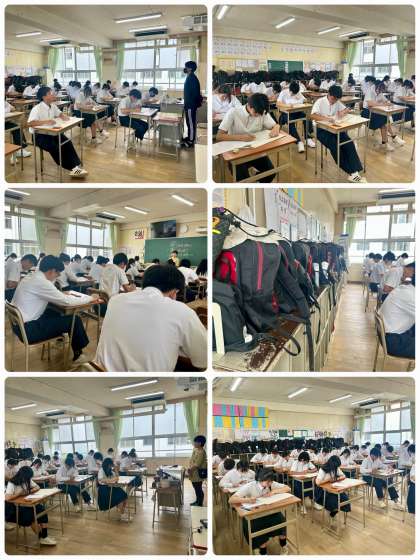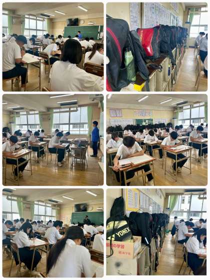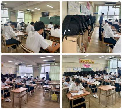 修学旅行のため、1・2年生から1週間遅らせて、本日5月29日(木)と明日に3年生は中間テストを行います。