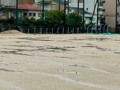 昨夜から降り続いている雨は、本日夕方には上がる天気予報ですが、グランドは使用不能の状態です。普段の水はけを考えると、明日に予定している体育大会学年練習は、予定通りの練習をすることが出来ないことが予想されます。