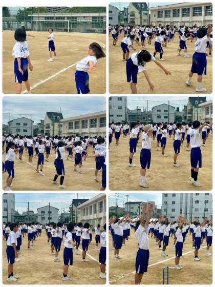 ラジオ体操が全員で一つの動きとなるため、もう一度全員で、周りを確認しながら行いました。