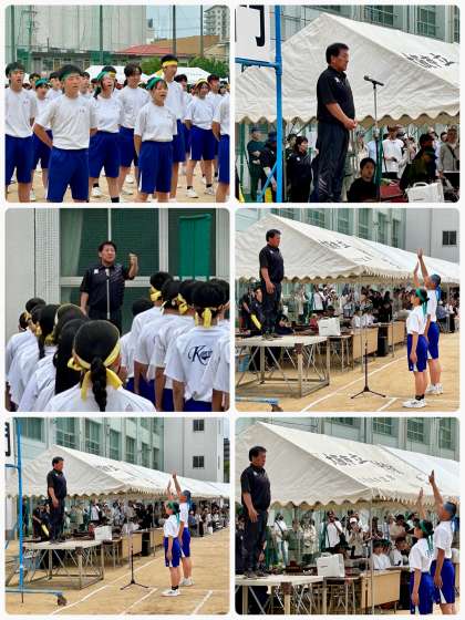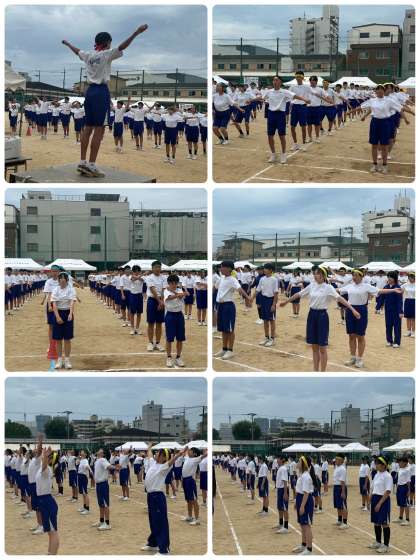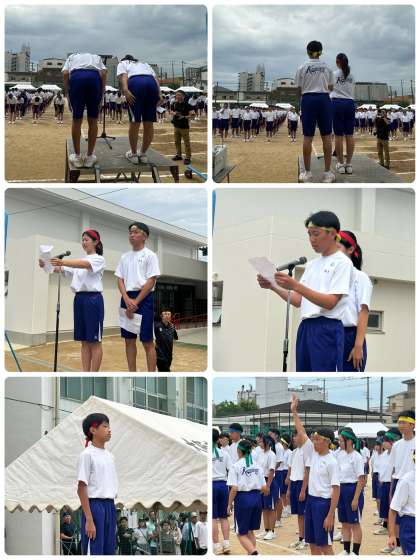 校歌斉唱、学校長あいさつ、選手宣誓、競技上の注意、準備体操と続きます。