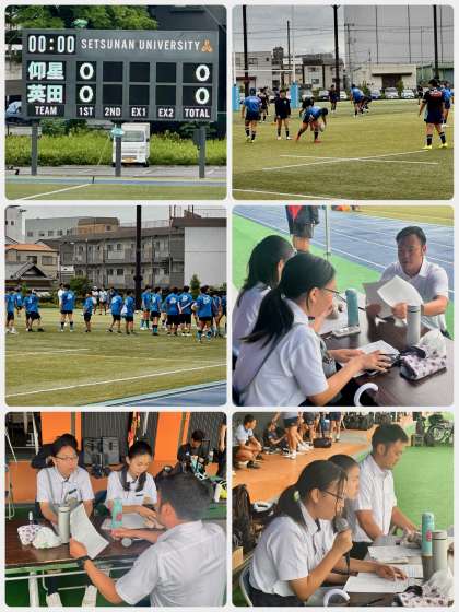 本日6月14日(土)は、大阪中学校総合体育大会ラグビーフットボールの部決勝戦が摂南大学グランドにて開催され、本校放送部がアナウンスを担当しました。
