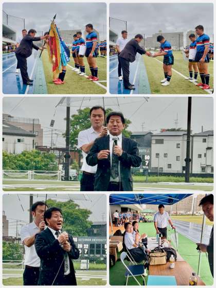 東海大学付属大阪仰星高等学校中等部が優勝し、閉会式では本校校長で大阪中体連ラグビー専門部長の阪井校長先生が、表彰と大会総括のご講評を行いました。