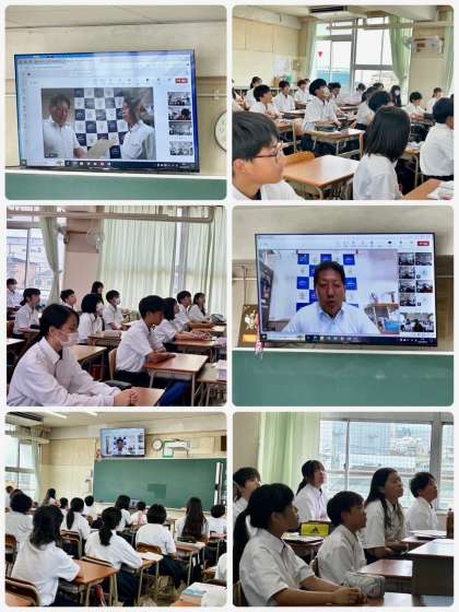 続いて、阪井校長先生からは、明日に控えている万博についてのお話がありました。55年前の1970年は、ご自身が静岡県浜松市在住の小学4年生で、2時間並んでアメリカ館の「月の石」を見たことや初めてたくさんの外国人を見て驚いた話をされていました。明日は皆さんにとって、有意義な万博校外学習になることを期待します。