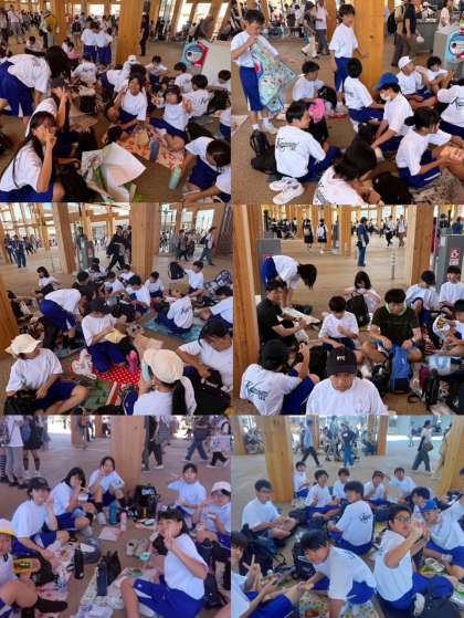 1年生は、大屋根リングの下でお昼ご飯を食べました!