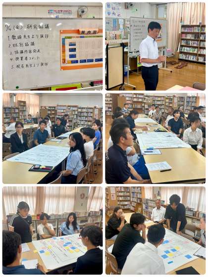6限目の授業後は3年生も帰宅し、全教員で研究協議を行いました。4クラスの授業見学を班別協議し、授業の良かったこと、改善が必要なこと等を話し合いました。
