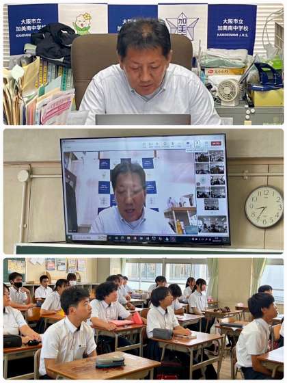 本日7月7日(月)は校長室からオンラインにて全校集会を実施しました。全校生徒とのあいさつの後、阪井校長先生から、七夕のお話と時代が変わっても変わらないもののお話がありました。コンピュータの発明からパソコン、ファミコン、携帯電話、スマートフォンが普及している時代になり、情報社会から超スマート社会になりました。AIが発達し、自動化がすすんでいますが、人と人とのコミュニケーションを大切にし、安心感のある接し方が出来るようになってほしいとのお話でした。