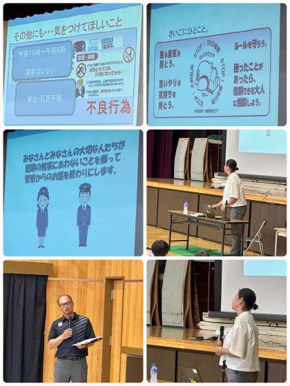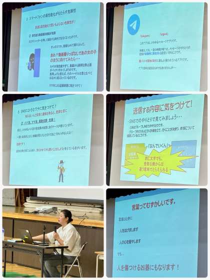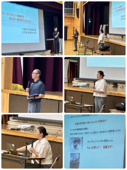 本日7月17日(木)の2限目は、体育館にて平野警察署生活安全課少年係の中谷主任に来校していただき、「スマートフォン・SNSを安全に使用するために」と題して、最近の中学生トラブル・対策のポイントについて講話をしていただきました。