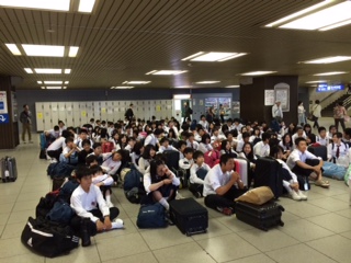 新大阪駅に予定通り、集合しました。中には、集合時間の1時間前から来ている生徒もいて、とても楽しみにしていることが見て取れました。