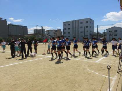 バラエティ競走、2年学年種目、クラブ行進の一場面です。