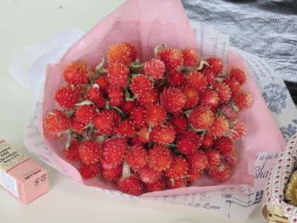 学校の花壇に咲いた「千日紅」の花をドライフラワーにしました。