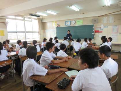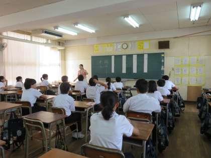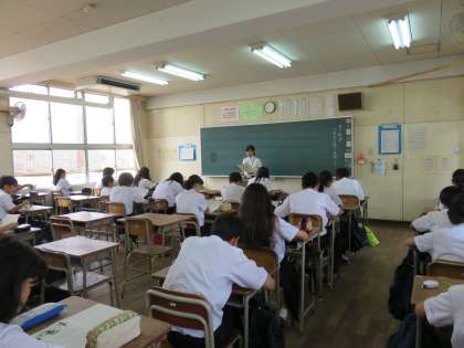 9月17日(土)は学校公開日で、土曜授業として全学年全学級で1限に「道徳」授業を実施しました。これは、「大阪府中学校道徳教育研究発表会(大阪市大会)」プレ公開授業を兼ねたものです。1年生は「あの戦争−大阪大空襲を体験して」(自他の生命の尊重)、2年生は「リクエスト」(責任をもつ態度)、3年生は「ロレンゾの友達」(本当の友情とは)をそれぞれ全学級で統一した教材として使用し、学習しました。保護者はもちろん教育委員会や他校の先生方も参観に来ていただき、生徒たちは少し緊張していました。