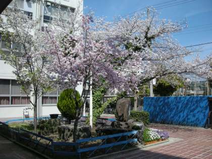 正門の桜も満開となり、新入生が入学するのを楽しみに待っています。