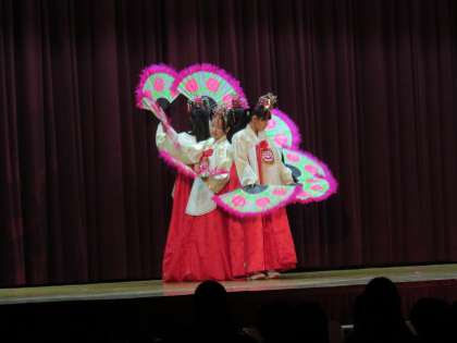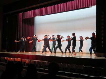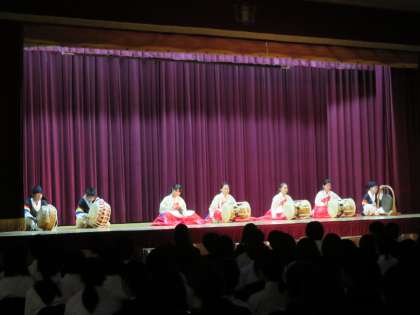 「国際クラブ(ポンソナ)のプチェチュム(扇の舞)とサムルノリ(楽器演奏)」、「3年生のエイサー」の様子です。