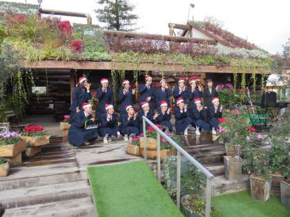 12月9日(土)、本校コーラス部による「花畑コンサート」が行われました。グランフロント大阪の西側に広がる「うめきたガーデン」で、素晴らしい歌声を聴かせてくれました。クリスマスソングメドレーやプリンセスプリンセスのMなど、みんながよく知っている曲ばかりで、駆けつけてくださった保護者の皆さんも一緒に口ずさんでいました。かなり寒い日でしたが、心はほっこりしました。