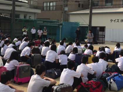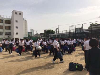 3年生の修学旅行、先程バス4台で無事出発しました。