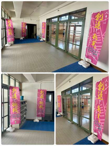校内正門前に4本、体育館内入口に4本、校長室前に1本、校長室内に2本飾っています。