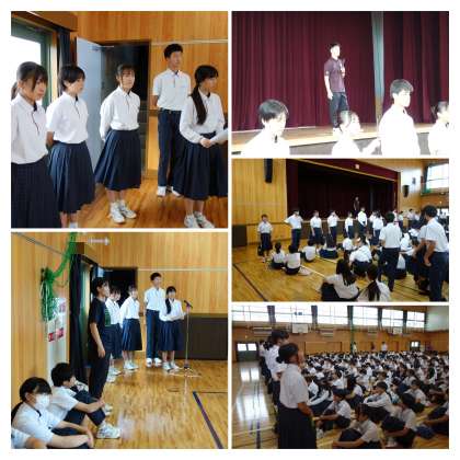 本日10月6日(月)は体育館にて全校集会を行いました。
