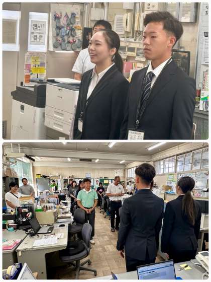 本日の職員朝礼にて、全教職員へのあいさつが行われました。