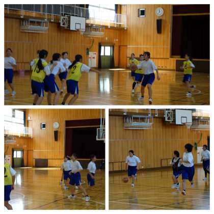 ドリブル、パス、シュートの個人技能と集団技能の向上を目指して、仲間と協力し、声をかけ合いながら、楽しさや喜びを味わう試合ができるようになることを目標に授業を行っていました。