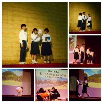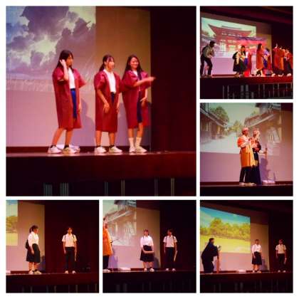 続いて2年生は、まず最初に今年の2年生校外学習で学んだことをもとにした劇を行いました。