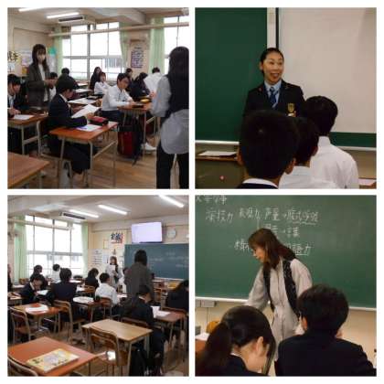 弁護士、スポーツ(セレッソ大阪)、保育士、JR、声優、看護師、洋菓子製造の方々に講話をしていただきました。