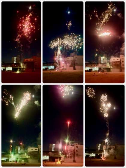 午後6時30分から30分ぐらいの時間でしたが、夜空に咲く色彩豊かな花火と、心に響く轟音により、忘れられない感動と興奮を体験しました。参加した生徒たちは、有意義なひとときを過ごしました。