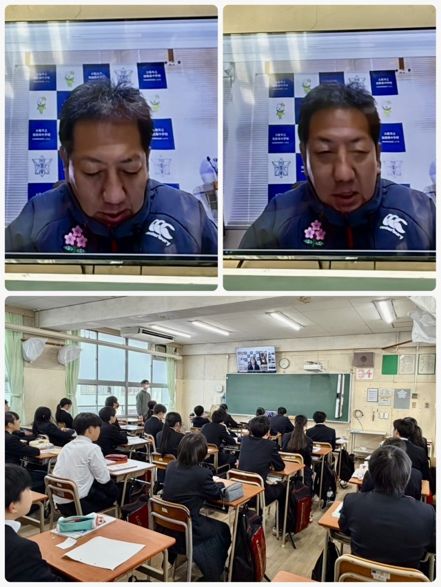 本日1月19日(月)は校長室にてオンラインでの全校集会を行いました。