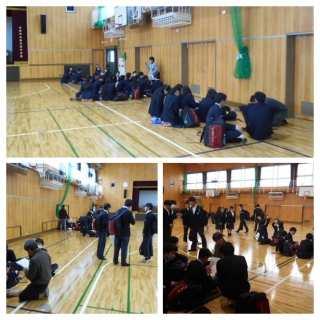 本日2月9日(月)5限目は、体育館にて3年生の私立高校を受験する生徒たちへの事前指導を行いました。