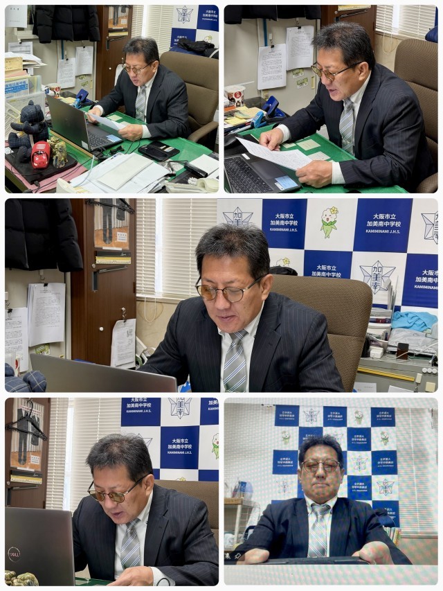 本日2月16日(月)は、校長室でオンラインにて全校集会を行いました。