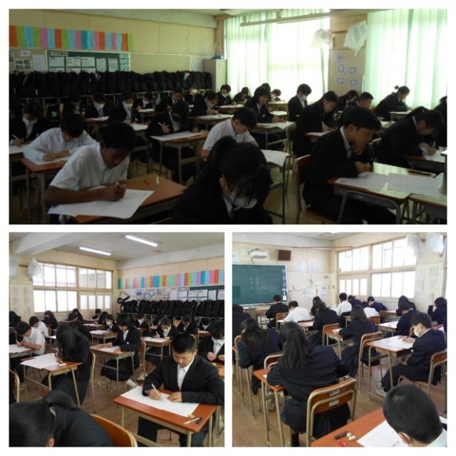 写真は2限目の英語科テストの様子です。上から順に1-1、1-2、1-3、2-1、2-2、2-3です。