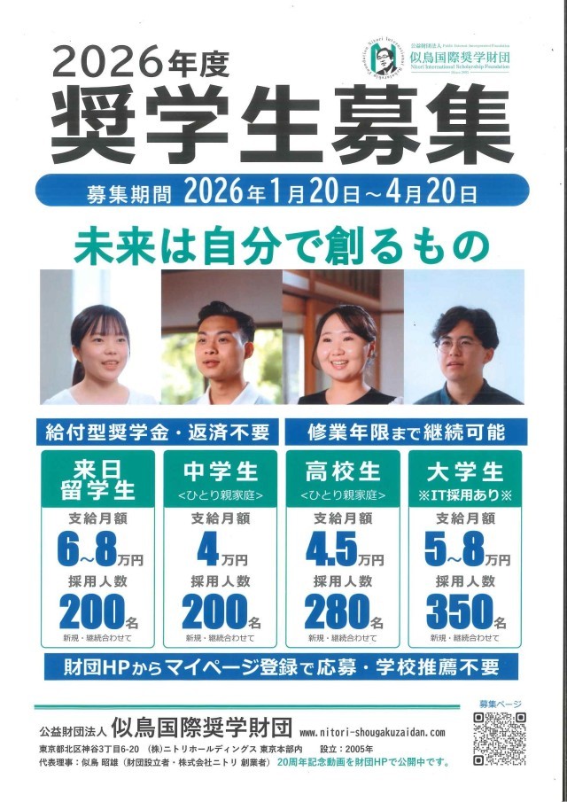 中学生向け奨学生募集のお知らせ
