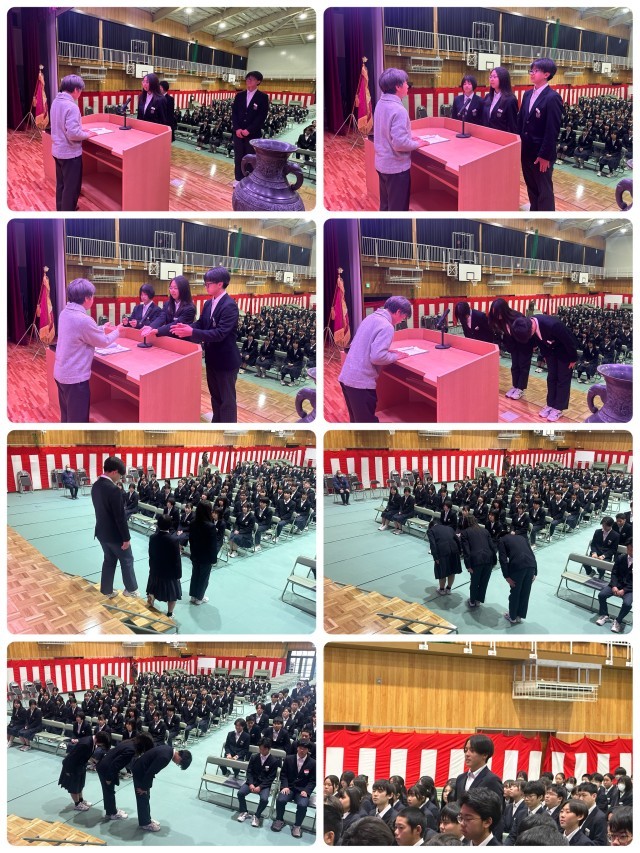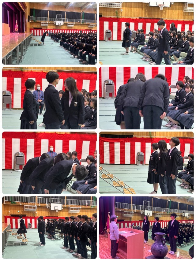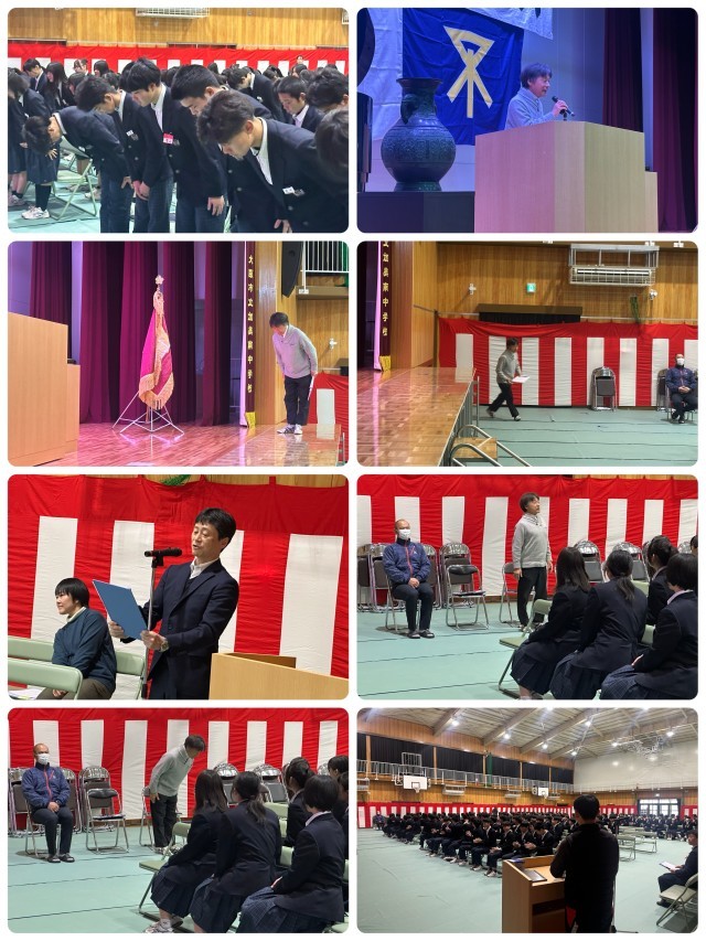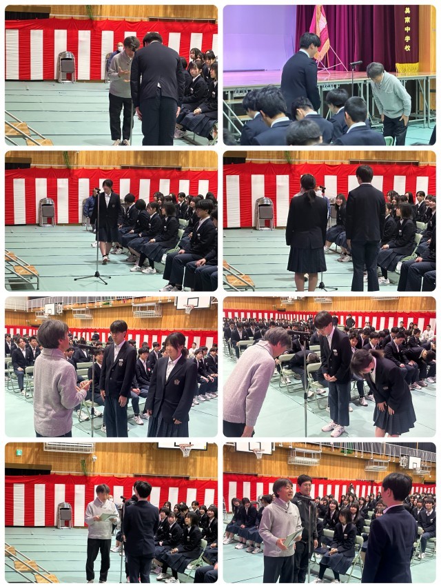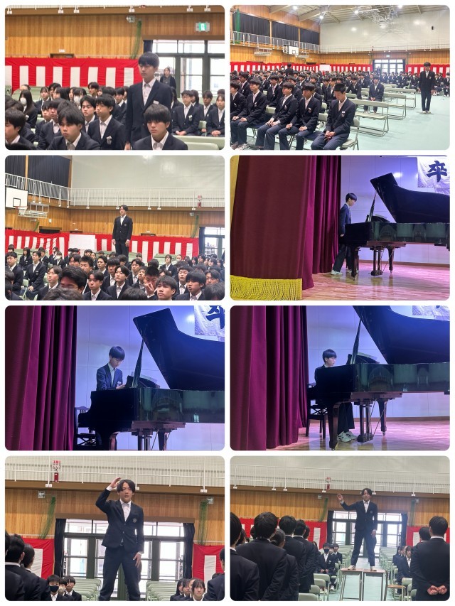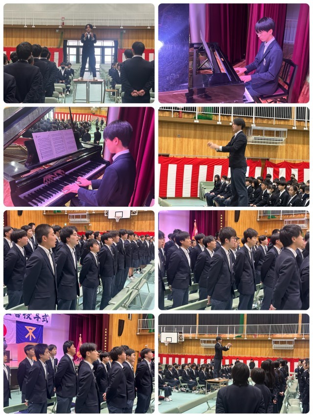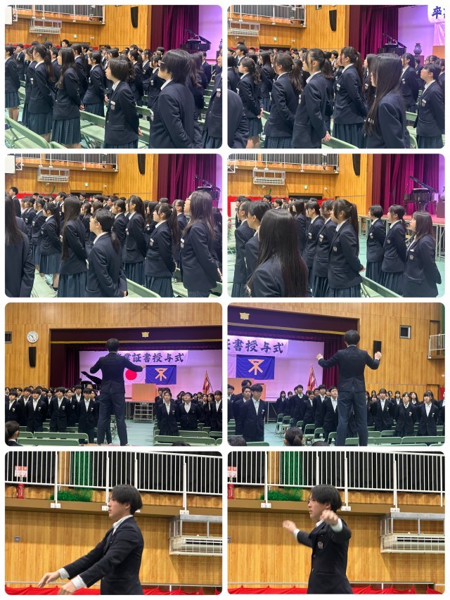 続いて、卒業生全員が式歌「いのちの歌」を心を込めて歌いました。明日も今日のように体育館にいる全員が感動する心のこもった歌声をお願いします。