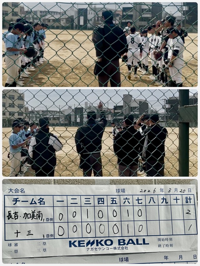 本日3月20日(金)は、大阪市春季総合体育大会軟式野球の部2回戰、対十三中学校戦が住之江中学校グランドにて開催されました。
