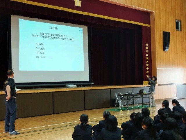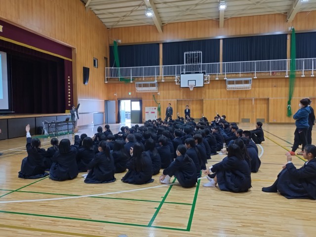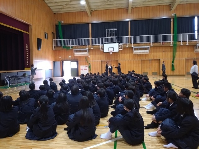 本日、眼鏡ブランドZoffの広報の方から、1年生に向けて、目の健康についての講習をしていただきました。目が受ける紫外線の影響とサングラスの役割についてお話を聞き、サングラスのモニター参加についての説明を受けました。1年生は本日プリントを持ち帰っておりますので、ご確認のうえ、モニターに参加される方は必要事項をご記入いただき、ご提出の程よろしくお願いいたします。