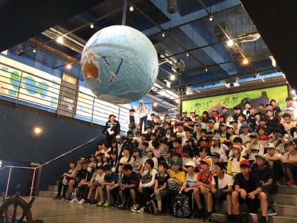 センター入り口入ってすぐ、エントランスホールです。大野先生からこの後の動きについて説明がありました。みんなしっかりと聞けていて、キビキビと動けています。