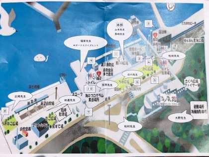 ウォークラリースタートしました。各番号のポイントで問題を解いたり、先生のポイントでいろいろなお題をクリアしたりしていきます。
