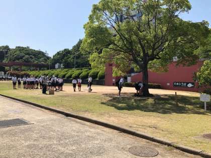 1、2組はカッター訓練、3、4組はひろばにてクラス活動からのスタートです。インストラクターの方の説明を真剣に聞いています。がんばって!