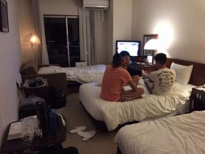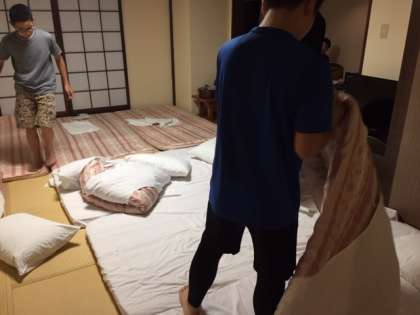 まもなく消灯です。明日はマリンスポーツ体験もあります。睡眠をしっかりとり、明日に疲れを残さないように。おやすみなさい。