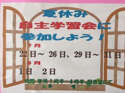 夏休みに自主学習会を行います。積極的に参加し自分で学習する習慣をつけましょう。