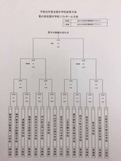 全国中学校ソフトボール大会 男子の部の組み合わせが決まりました。