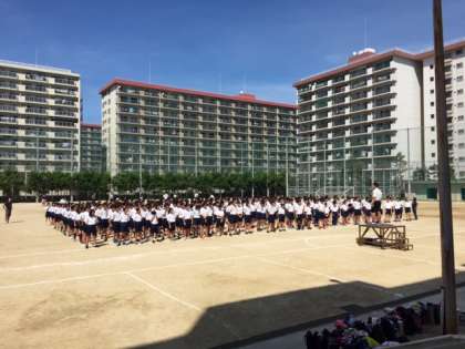 残暑厳しいなか、行進、開会式などの全体での動きを練習しました。