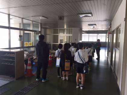 児童は、中学校の施設を知ろうという目的で、各校舎の見学したり、平野北中学校ができる前の話を聴いたりしました。小学校との違いや、発見したことや感じたことをしっかりとまとめていました。