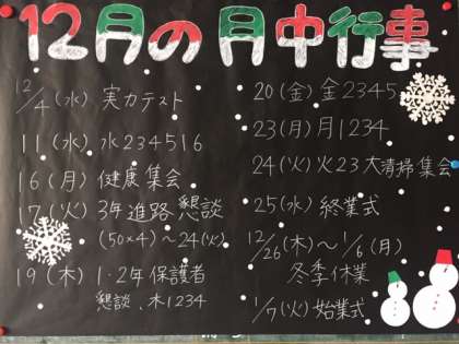 師走となりました。2学期まとめの一か月、気を抜かずに頑張りましょう。
