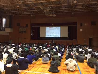 平野警察の生活安全課少年係から講師として来ていただきました。危険ドラックや麻薬、覚せい剤などの薬物について、身体への影響についてや依存性など、わかりやすく説明していただきました。
