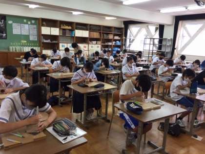 1年生の授業の様子です。数学の問題演習、美術のペン立ての製作です。主体的に授業に取り組んでいます。