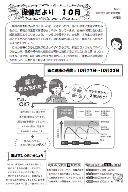 空気がひんやりと涼しくなってきました。朝晩の気温差で体調を崩さないように、服装など適切に調整しましょう。