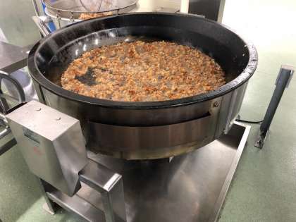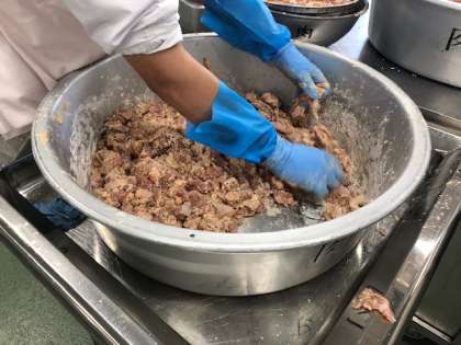 今日は、皮付きのもも肉に、しょうが汁、料理酒、濃口しょうゆで下味をつけ、でん粉をまぶして揚げています。たくさんの子がおかわりに手を挙げてくれていました。おかげで食缶の中も空っぽになっていました。