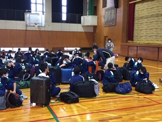 出発式を行い、修学旅行に出発します。