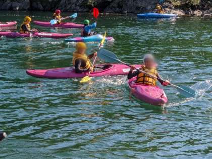 2日目午前、選択体験のカヤックチームです。12人の少人数でしたが、思いっきり楽しみました。